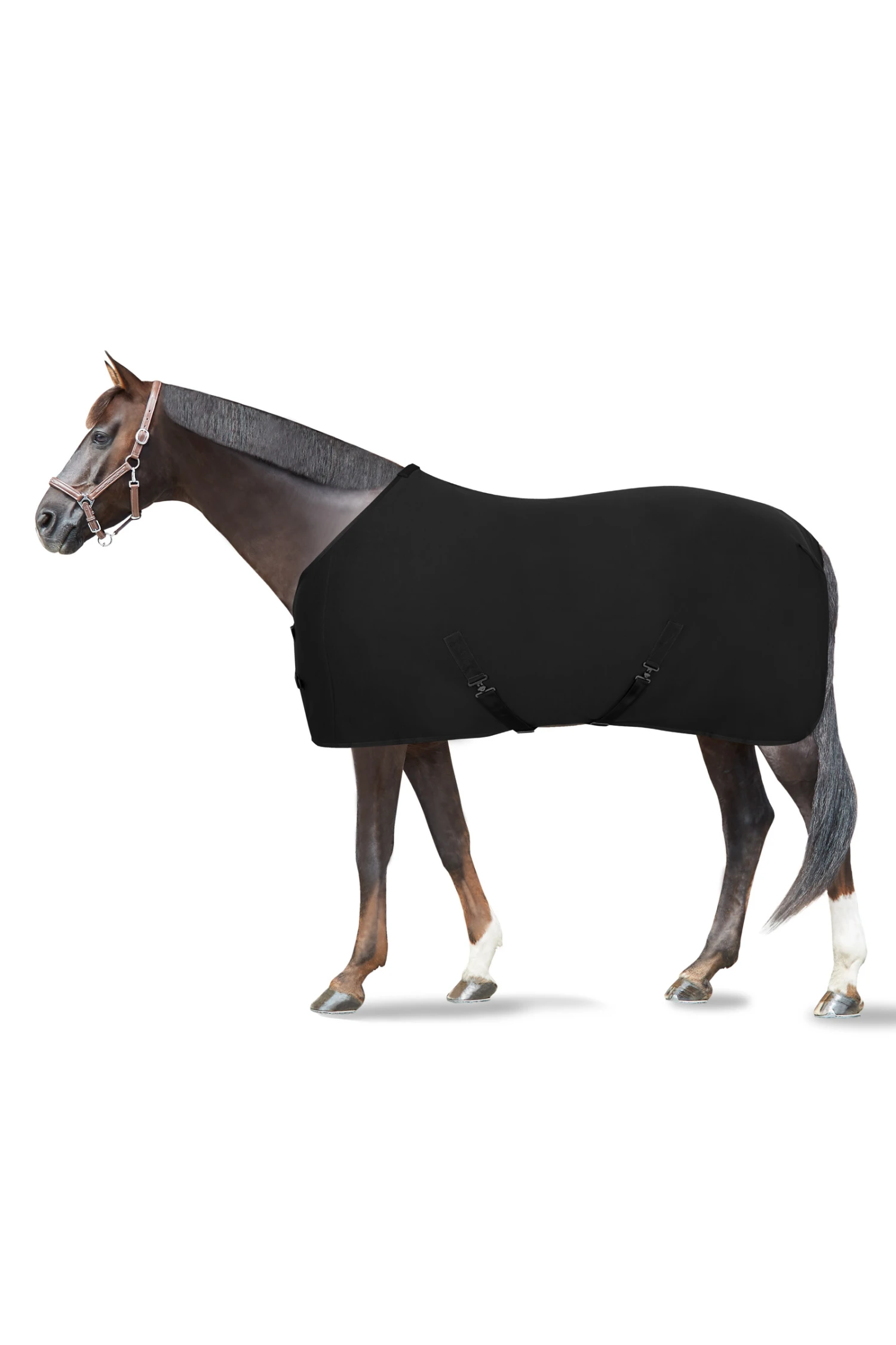 Eine schöne Abschwitzdecke, perfekt nach schweißtreibenden Trainingseinheiten, um die Feuchtigkeit abzuleiten, bevor du dein Pferd eindeckst oder abpflegst. Die weiche Kunstfellpolsterung am Widerrist vermeidet Scheuerstellen an dieser empfindlichen Stelle. Die verstellbaren Kreuzgurte und die vorderen Verschlüsse sorgen für eine perfekte Passform und halten die Decke an ihrem Platz. Die Karabiner am vorderen Verschluss erleichtern das schnelle Schließen und Öffnen, sobald du die Schnalle auf die richtige Passform eingestellt hast.