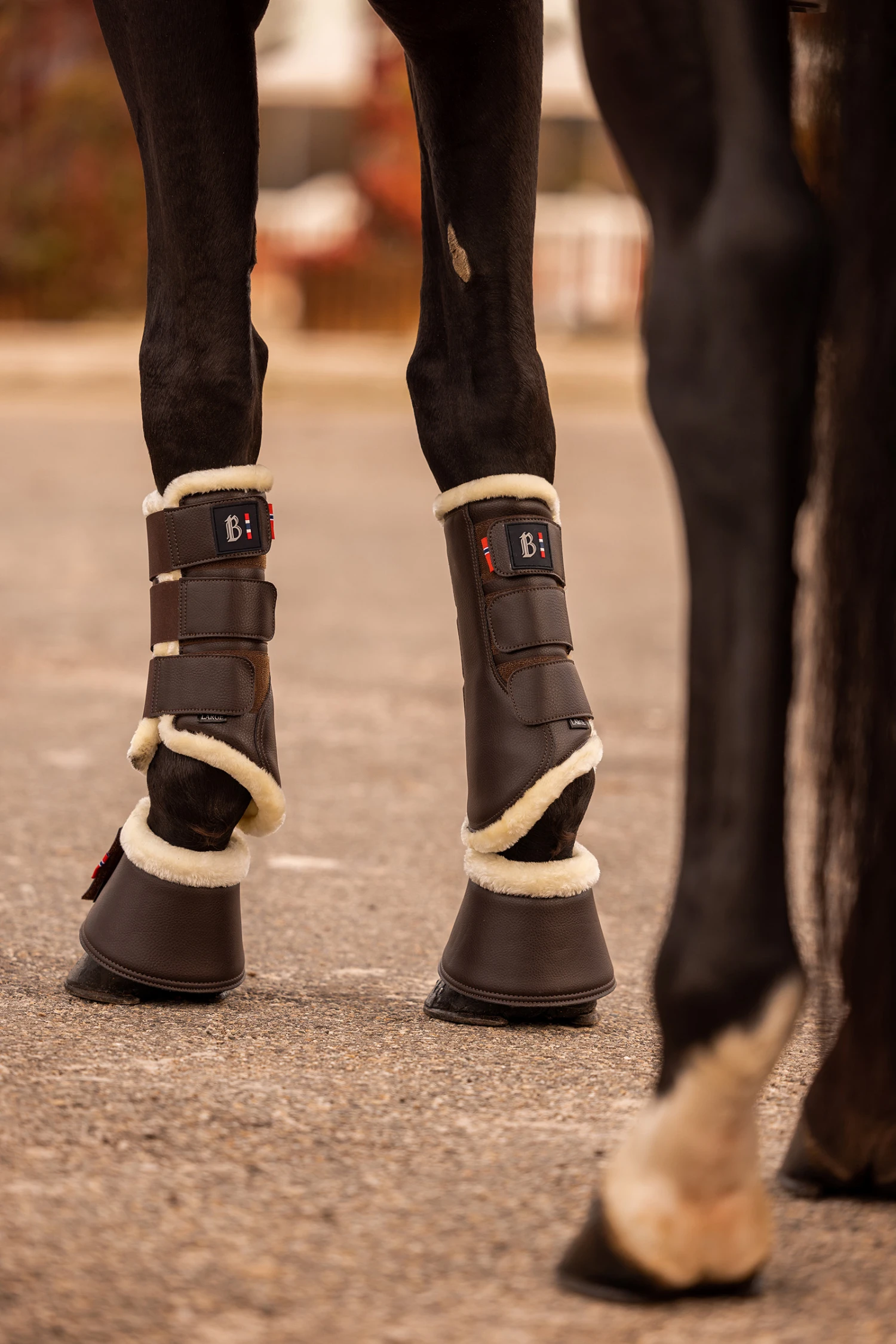 Unsere B Vertigo Wellington Gamaschen sind aus strapazierfähigem Kunstleder gefertigt und mit weichem Kunstfell gefüttert. Klettverschlüsse und Gummizüge sorgen für einen sicheren Sitz am Pferdebein. Der klassische Look lässt sich leicht in deine bisherige Ausrüstung integrieren. Kombiniere diese Gamaschen mit dem Rest unseres B Vertigo Wellington-Sortiments, um ein komplettes Outfit zu erhalten!