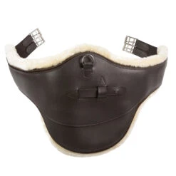 Die Sitzfläche ist komplett aus Lammfell mit einer Wollhöhe von ca. 20mm gefertigt, die Unterseite nur im Rückenbereich. Seitliche Fellpauschen bieten zusätzlichen Halt. Unter dem durch einen Reißverschluß abnehmbaren Sitzfell besteht die Möglichkeit ein spezielles Kopfeisen in eine Tasche einzuschieben. Die am Kopfeisen befestigten Sturzfedern erlauben das Aufsteigen über Steigbügel. Herausnehmbare Polster links und rechts vom Wirbelkanal erhöhen den Sitzkomfort und schonen den Pferderücken. Warmblut- und Ponygrößen werden unter der Artikelnummer 14483 verkauft.